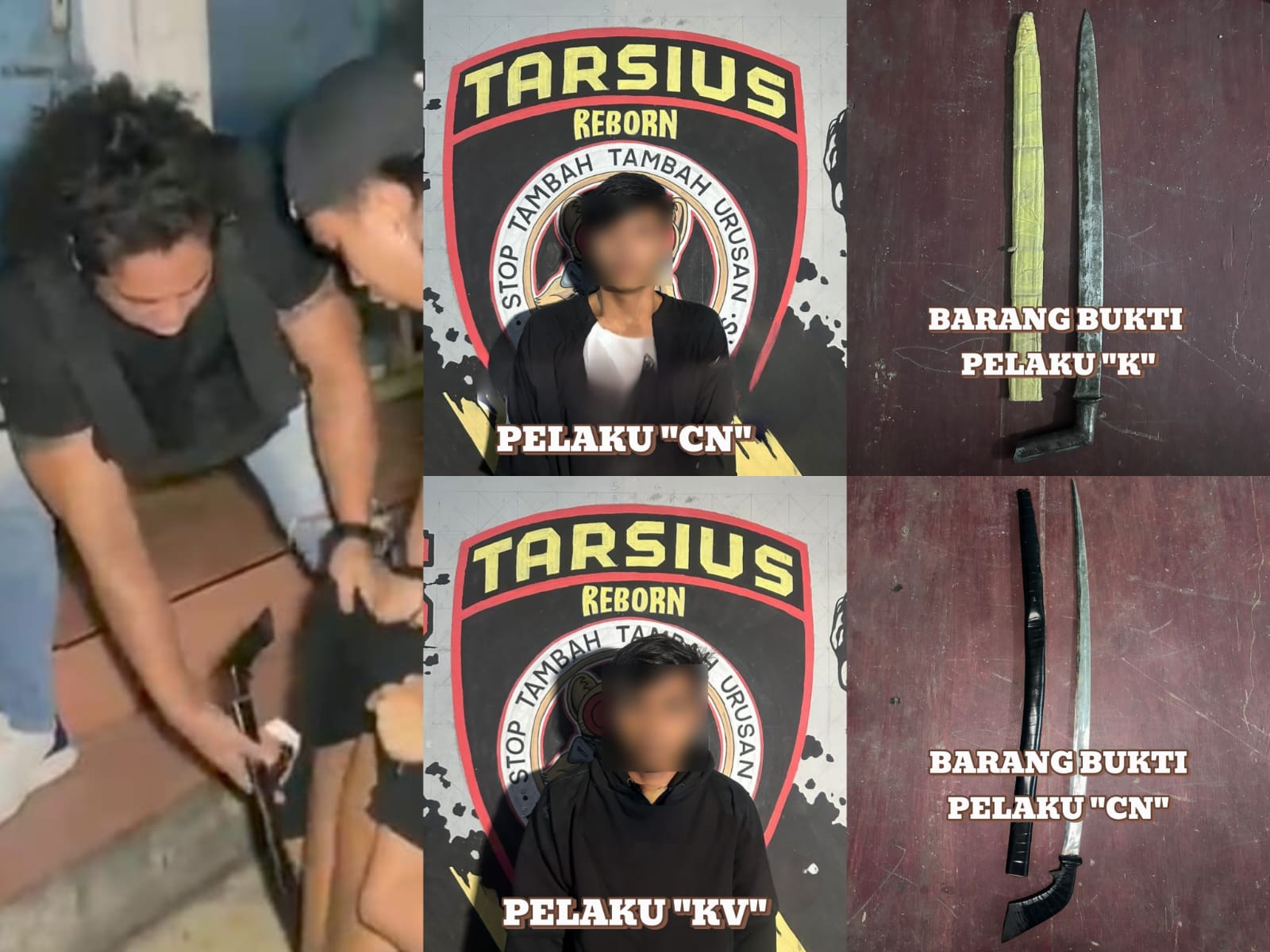 Setelah dilakukan pemeriksaan badan, ditemukan dua bilah pisau penikam di pinggang kedua pelaku. Dalam interogasi singkat, keduanya mengakui bahwa mereka membawa sajam tersebut untuk berjaga-jaga.