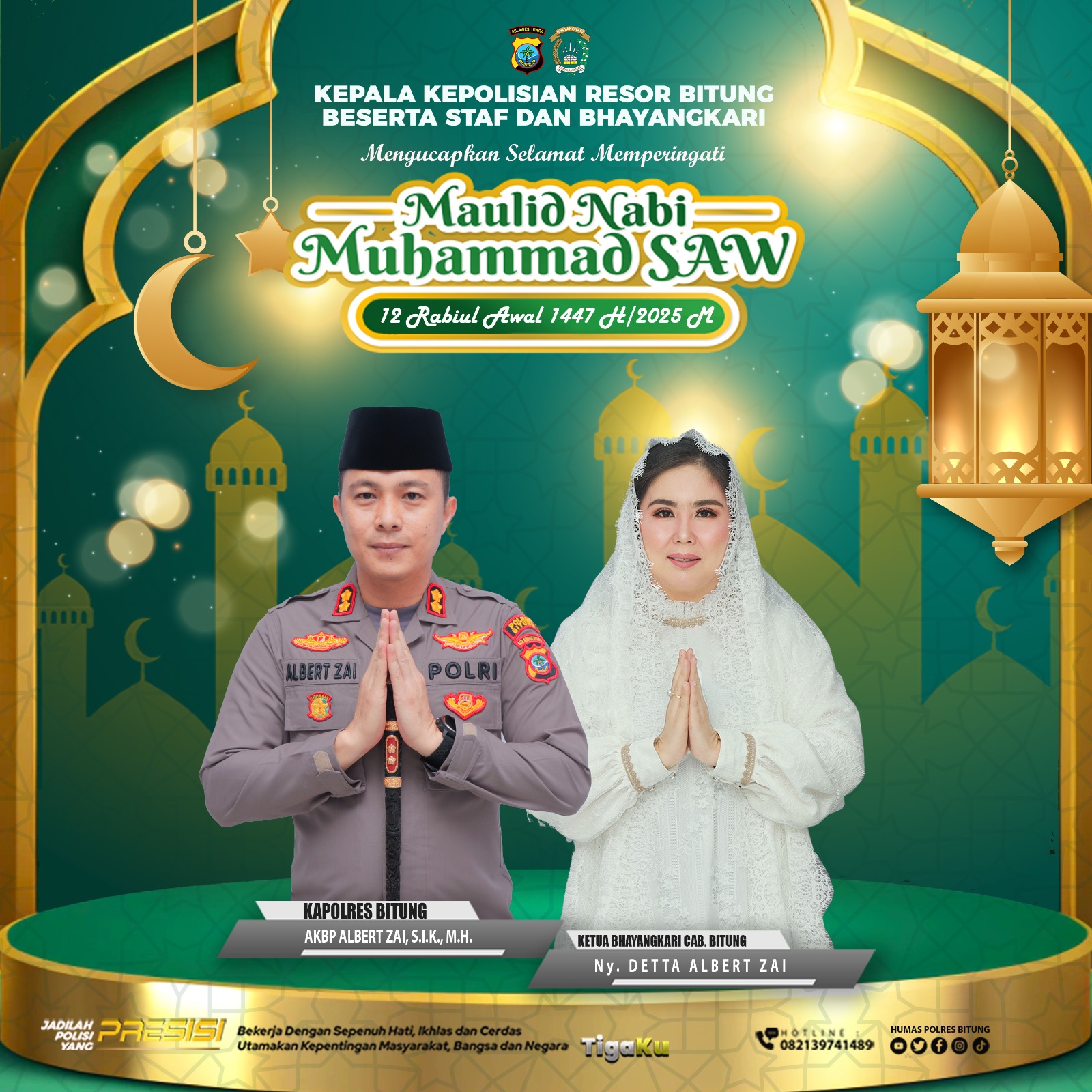 Kapolres Bitung dan Ketua Bhayangkari Ucapkan Selamat Memperingati Maulid Nabi Muhammad SAW 1447 H