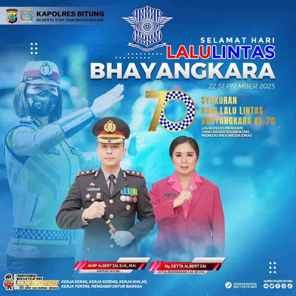 bitung-Channelnusantara.com-Humas Polres Bitung-Kapolres Bitung, AKBP Albert Zai, SIK., MH, bersama staf dan Bhayangkari mengucapkan selamat Hari Lalu Lintas Bhayangkara ke-70. Ucapan ini disampaikan sebagai bentuk apresiasi dan penghargaan atas dedikasi dan kontribusi Polri dalam menjaga keamanan dan keselamatan lalu lintas di Indonesia.