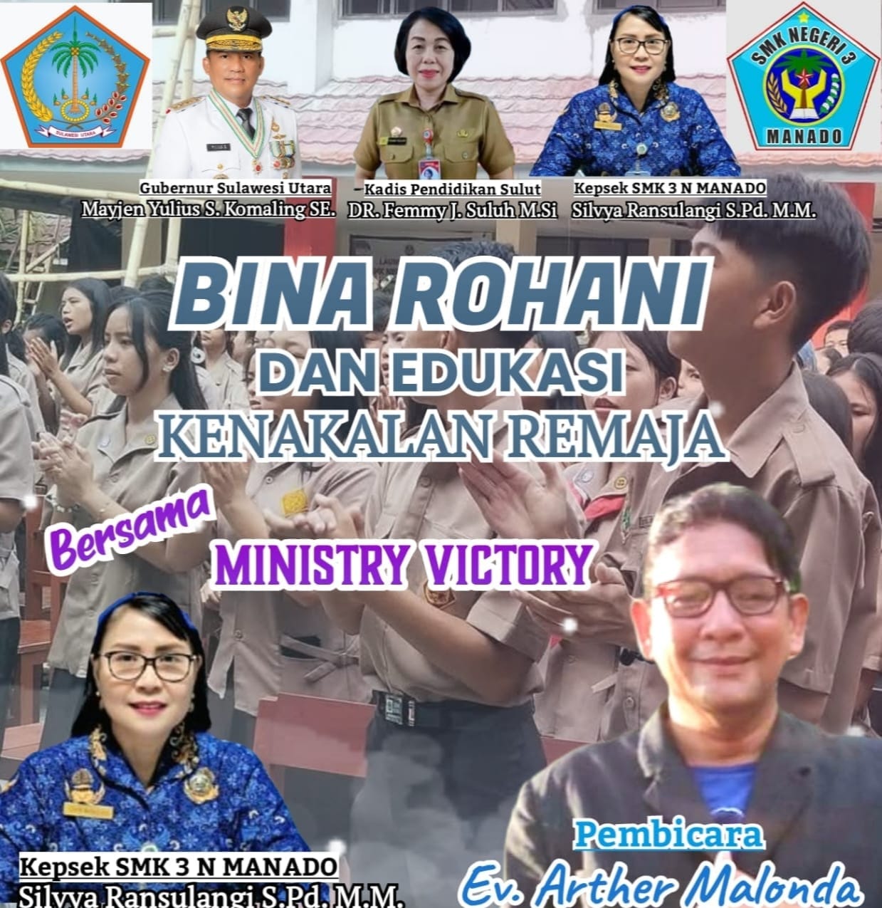 Kepala SMK Negeri 3 Manado, Silvya Ransulangi, S.Pd., M.M., dalam sambutannya menegaskan bahwa pembinaan rohani bukan sekadar kegiatan seremonial, tetapi merupakan strategi pembentukan karakter yang berkelanjutan bagi peserta didik.