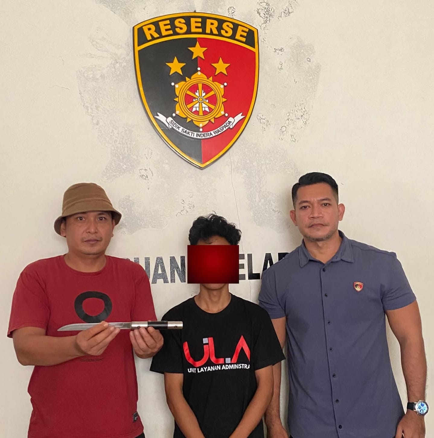 Bolmut-channenusantara.com-Tim Resmob Satuan Reserse Kriminal (Satreskrim) Polres Bolaang Mongondow Utara berhasil mengamankan seorang pemuda berinisial ML (19) yang diduga melakukan pengancaman menggunakan senjata tajam di Desa Boroko Timur, Kecamatan Kaidipang. Rabu (08/10/2025).