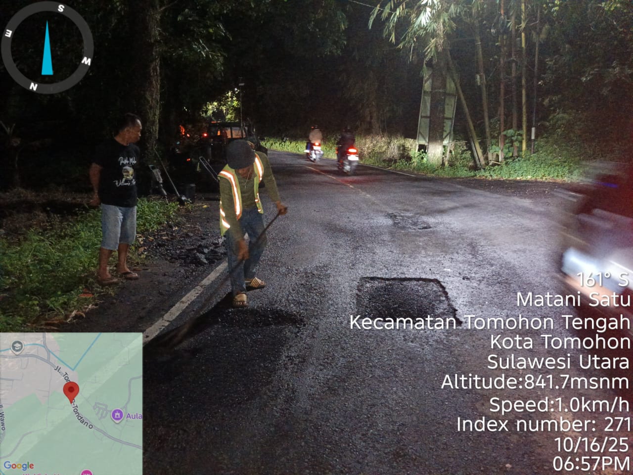 Menanggapi keluhan masyarakat terkait kondisi jalan yang berlubang dan tergenang air, Kepala Satuan Kerja (Kasatker) PJN Wilayah I BPJN Sulawesi Utara, Ir. Ringgo Redetyo, S.T., M.Eng., melalui PPK 1.1, Sam Haerani, menyampaikan bahwa pihaknya telah mengerahkan tim lapangan untuk melakukan survei serta penanganan awal di lapangan.