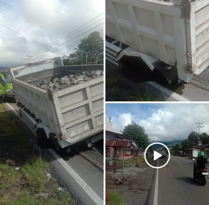 Bolmong-channelnusantara.com-Sebuah truk bermuatan batu mengalami kecelakaan tunggal di ruas Jalan Trans Sulawesi, Desa Inobonto, Kabupaten Bolaang Mongondow, tepatnya di kompleks Kantor Pos, pada Rabu (17/12/2025).