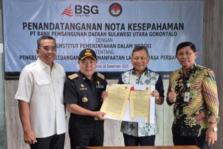 Jakarta-channelnusantara.com-PT Bank Pembangunan Daerah Sulawesi Utara dan Gorontalo (Bank SulutGo) kembali menegaskan komitmennya dalam mendukung penguatan kapasitas pemerintahan daerah melalui penandatanganan Nota Kesepahaman (MoU) dengan Institut Pemerintahan Dalam Negeri (IPDN) Kampus Sulawesi Utara. Kerja sama strategis ini difokuskan pada pengelolaan keuangan serta pemanfaatan layanan jasa perbankan.