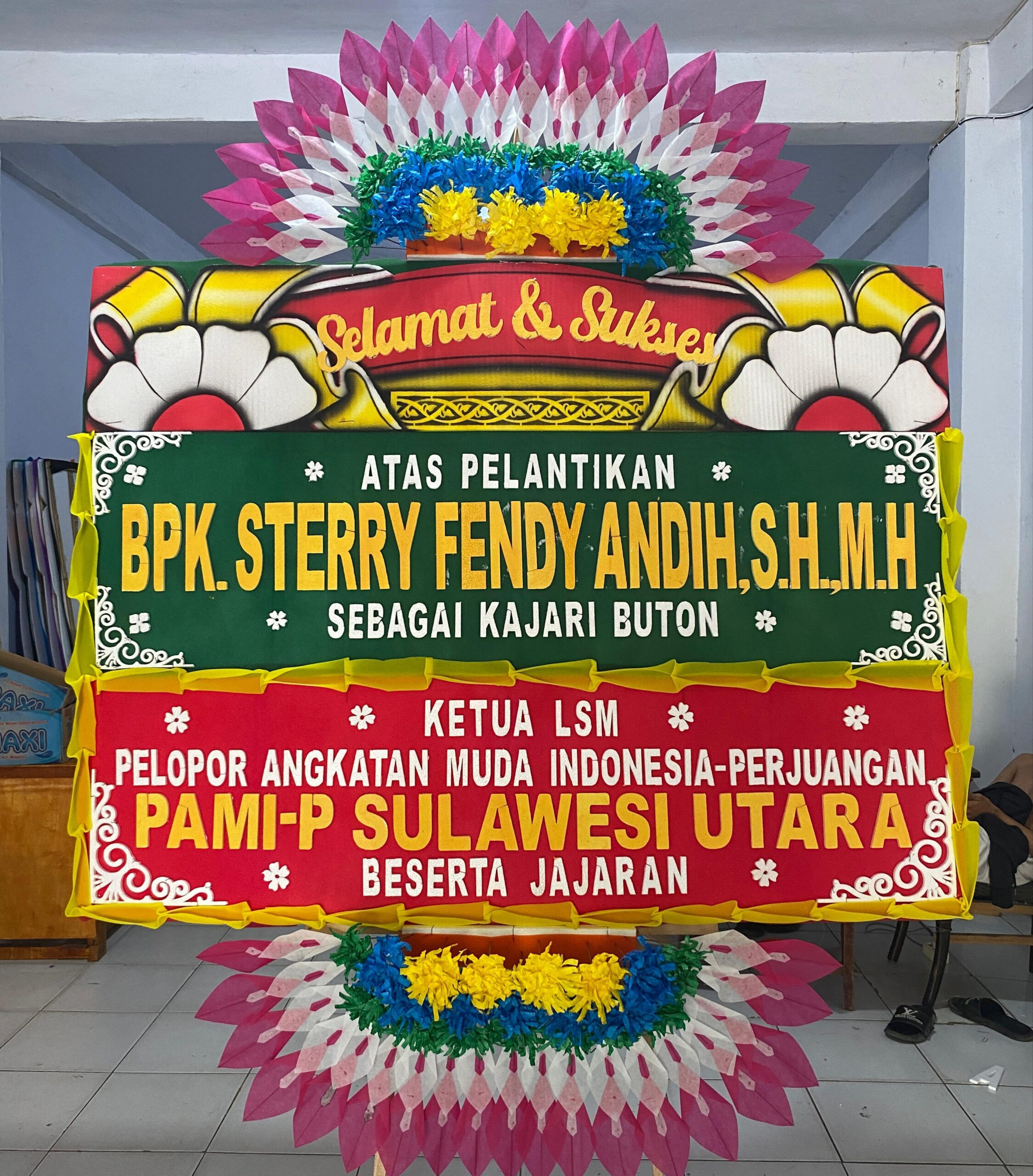 Manado-channelnusantara.com-Ketua Lembaga Swadaya Masyarakat Pelopor Angkatan Muda Indonesia Perjuangan (LSM PAMI-P) Sulawesi Utara, Jonathan Mogonta, menyampaikan ucapan selamat dan sukses atas pelantikan Bapak Sterry Fendy Andih, S.H., M.H. sebagai Kepala Kejaksaan Negeri (Kajari) Buton.