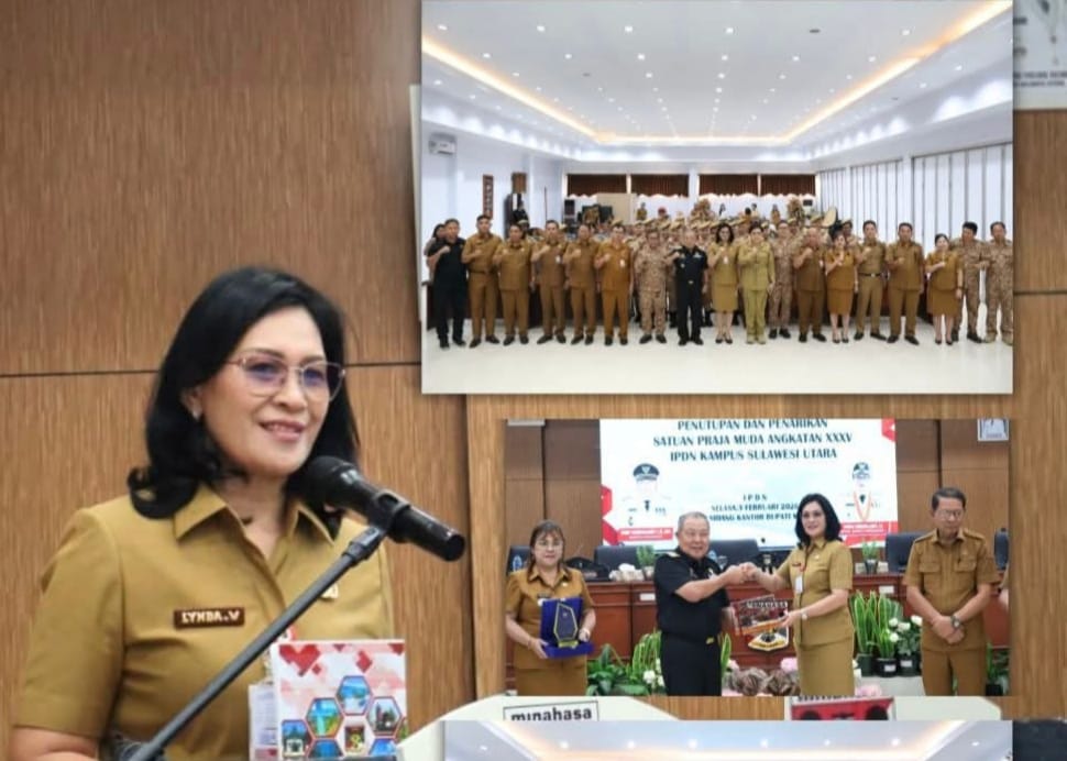 Minahasa-channelnusantara.com-Sekretaris Daerah Kabupaten Minahasa, Ibu Dr. Lynda D. Watania, MM, M.Si, menghadiri Penutupan Magang II dan Penarikan Satuan Praja Muda (Satpraja Muda) Angkatan XXXV Institut Pemerintahan Dalam Negeri (IPDN) Kampus Sulawesi Utara, yang dilaksanakan pada Selasa, 3 Februari 2026, bertempat di Ruang Sidang Kantor Bupati Minahasa.